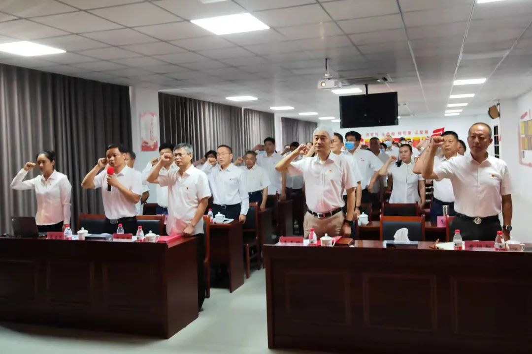 At the meeting, all Party members faced the red Party flag, raised their right hands, and, with high spirits and loud voices, took the oath again, reaffirming their loyalty to the Party and expressing their determination to devote their lives to the cause of the Party and the people.