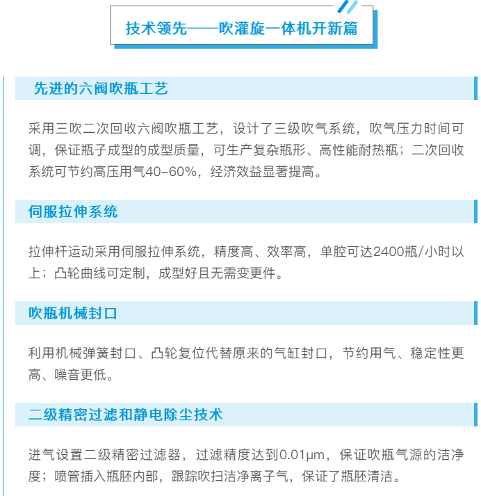 Zhongchen Light Machinery, as the first domestic supplier to launch such PET bottle sterilization products, started with a high starting point in blow-fill-seal technology. For example, the Heineken Group has strict inspection standards for products, and the customer's beverage material is malt-type beer drinks. In order to achieve a 50PU sterilization effect, the bottles filled and capped after blowing need to undergo a high-temperature sterilization process of 61 degrees Celsius for 30 minutes in a tunnel sterilization machine. After sterilization, the diameter change rate and liquid level drop of the bottles need to be controlled within strict standard values. In order to achieve this goal, special optimization design is needed for the heating machine, mold, and base cooling parts, as well as rigorous testing and optimization of the blowing process. Zhongchen Light Machinery successfully met Heineken Group's production requirements. The PepsiCo/F&N company proposed an ultra-high standard that the bottom stress test of the bottle must not have cracks within 30 minutes (the domestic general standard test is not to leak within 30 minutes), and after the continuous efforts of the Zhongchen Light Machinery blow-fill-seal team, they met the customer's acceptance standards. This not only reflects Zhongchen Light Machinery's relentless pursuit of technology, but also reflects its commitment to being responsible for customers, taking customers as the center, and creating value for customers.