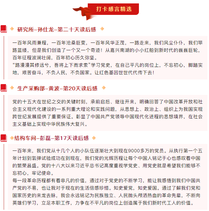 As the Communist Party of China celebrates its 100th anniversary, in order to push the Party history learning and education deeper and more solidly, and to ensure that the red gene and revolutionary spirit are passed down from generation to generation, the Party branch of Zhongchen Light Machinery has organized a 10-day Party history reading check-in activity with the theme of "Studying Party History and Gratitude to the Party" under the guidance of the higher-level Party committee.