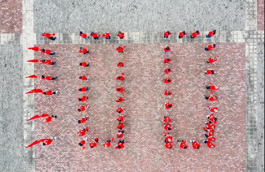 All Party members formed the numeral "100" in a line to commemorate the 100th anniversary of the Party's founding.