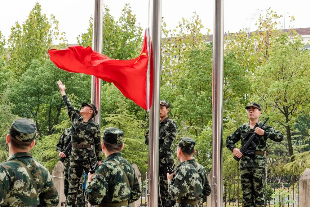 At 8:58 am, the flag-raising ceremony officially began. With the sun's rays shining brightly, all employees lined up in a neat and solemn manner. The handsome flag bearers marched with a confident and powerful gait, escorting the national flag to the flagpole. Accompanied by the majestic and stirring tune of the "March of the Volunteers," the vibrant five-starred red flag rose majestically into the air and waved in the wind. In the resounding national anthem, all the participants paid respect by fixing their gaze on the rising flag.