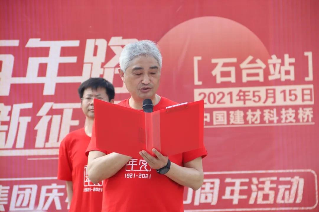 Yang Jianqiang gave a detailed introduction of the China Building Materials Science and Technology Bridge in his speech, which was a key project of China Building Materials Group's targeted poverty alleviation in Shitai County in 2015. It embodies the genuine sincerity, true feelings, and true efforts of China Building Materials Group's targeted poverty alleviation. Starting from the China Building Materials Science and Technology Bridge, we will encourage all building materials people to maintain a good spirit and achieve excellent business performance to celebrate the 100th anniversary of the founding of the Party, and we wish the "Running for a Century and Struggling for a New Journey" event a complete success.