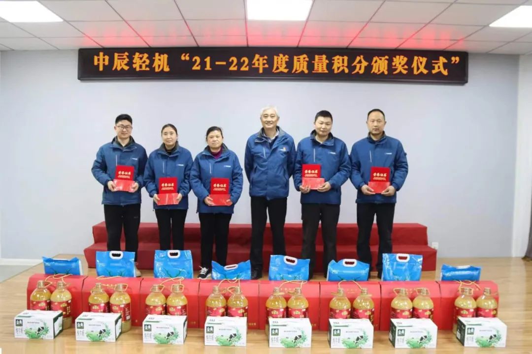 On February 13, Zhongchen Light Machinery held the 2021-2022 Quality Score Award Ceremony, summarizing achievements, honoring outstanding performers, setting examples, and inspiring enthusiasm to encourage all employees to devote themselves more enthusiastically, with more vigorous spirit, and more rigorous style to the company's quality improvement work, striving to push forward the implementation of the "Quality Improvement Year" initiatives. Zhongchen Light Machinery Party Secretary and Chairman Zhao Zhengwang attended the ceremony and delivered a speech.
